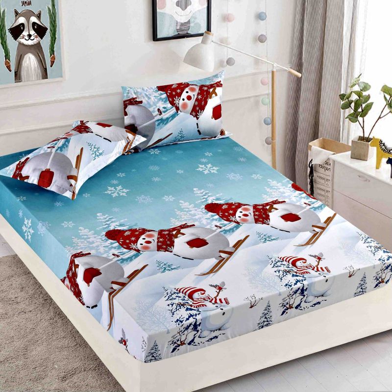 Коледен модел чаршаф с ластик + 2 бр. калъфки ,100% памук от 3 части