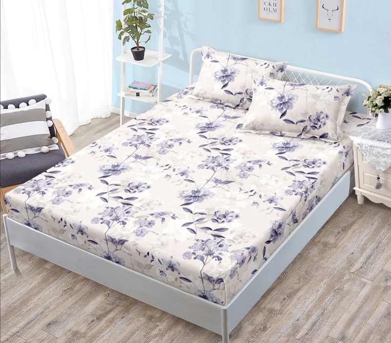 Чаршаф с ластик 160×200 см + 2 калъфки за възглавници – Поликотън