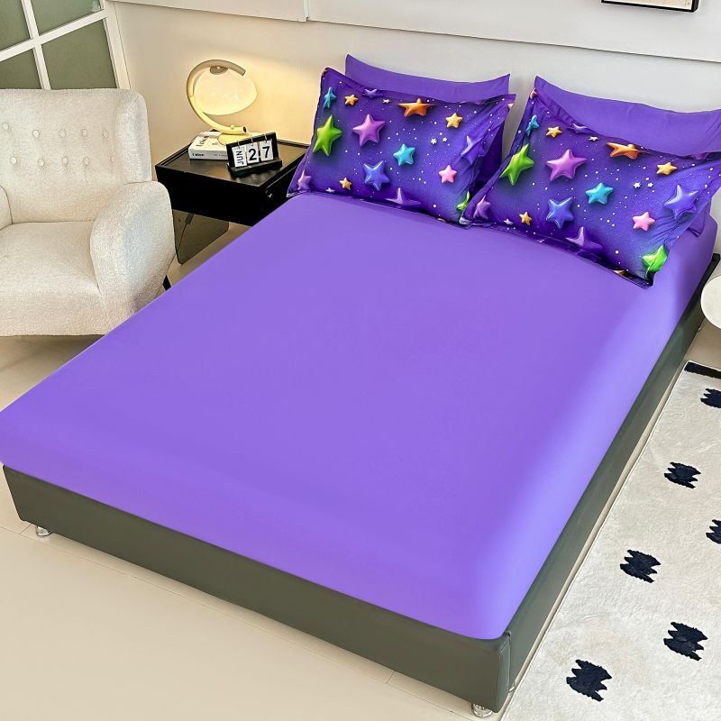 - Долен чаршаф: 1 бр., с размери 180х200 см, снабден с ластик. Този чаршаф осигурява плътно и стабилно прилепване към матрака, предотвратявайки свиване и разместване по време на сън.