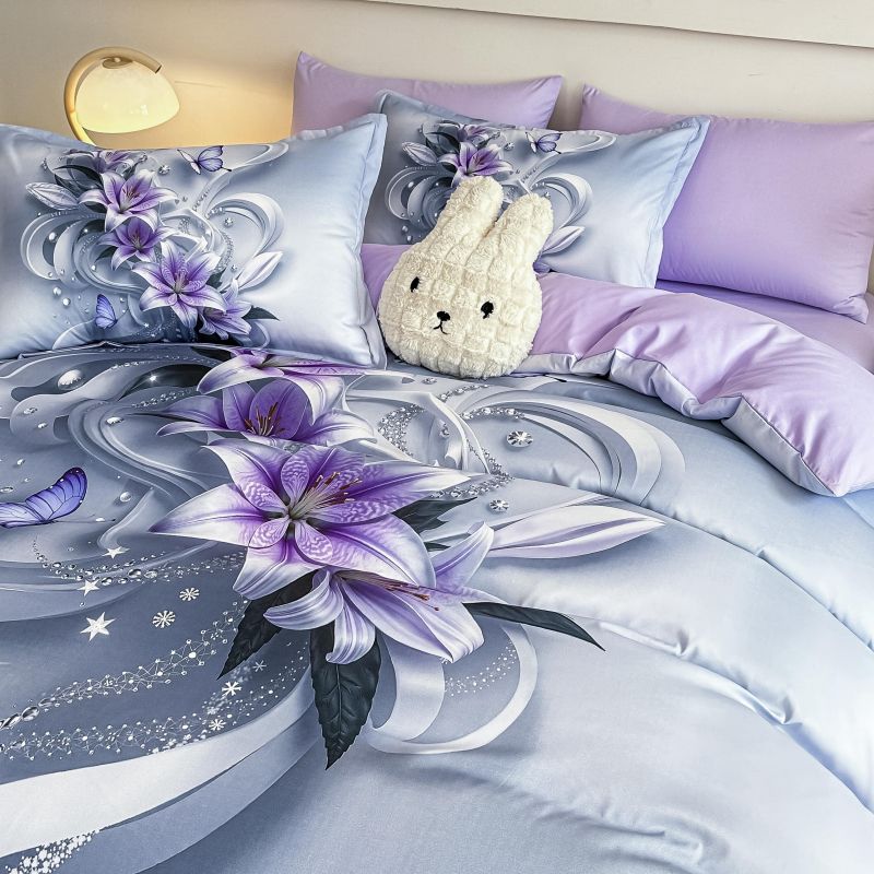 5 D Спален комплект от 100% памук с чаршаф с ластик,6 части