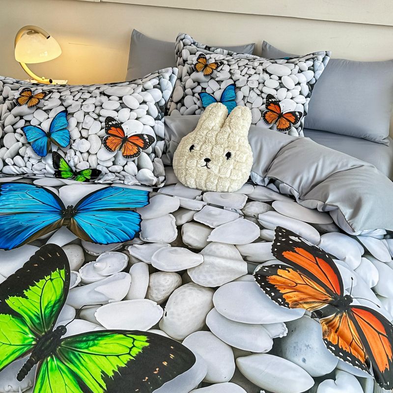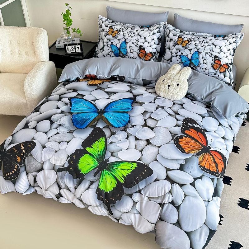 5 D Спален комплект от 100% памук с чаршаф с ластик,6 части