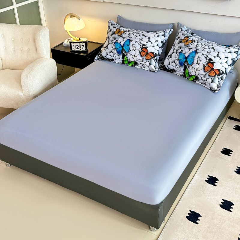 - Долен чаршаф: 1 бр., с размери 180х200 см, снабден с ластик. Този чаршаф осигурява плътно и стабилно прилепване към матрака, предотвратявайки свиване и разместване по време на сън.