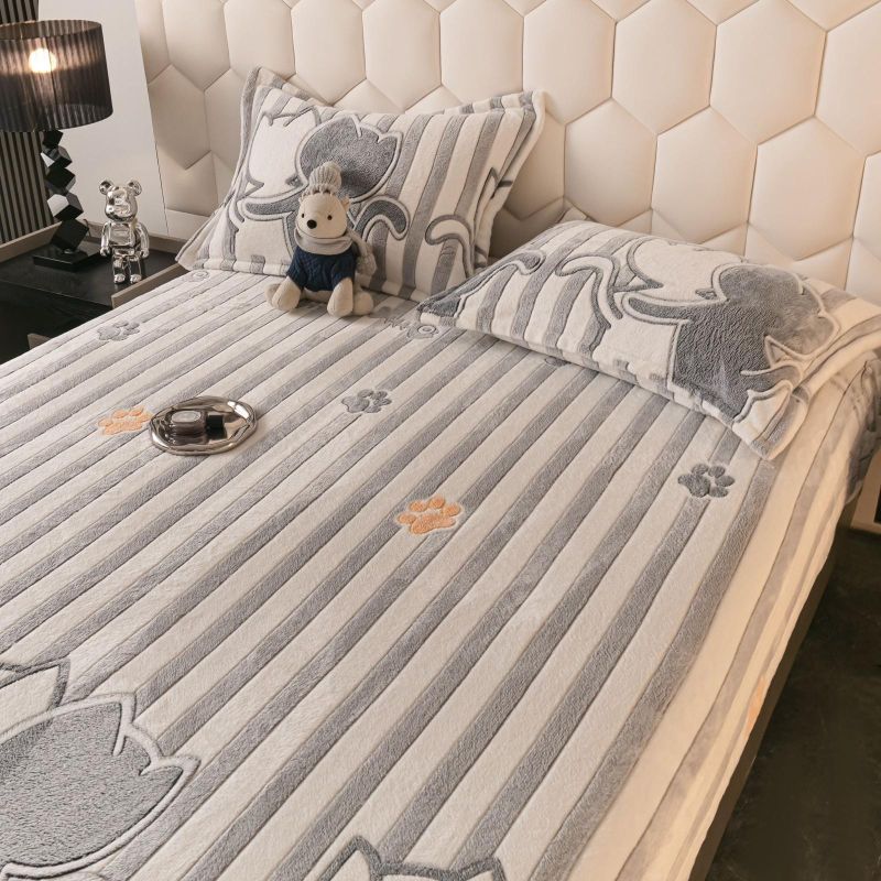 Плюшен чаршаф с ластик+2бр. калъфки за възглавница,Cocolino 100% полиестер