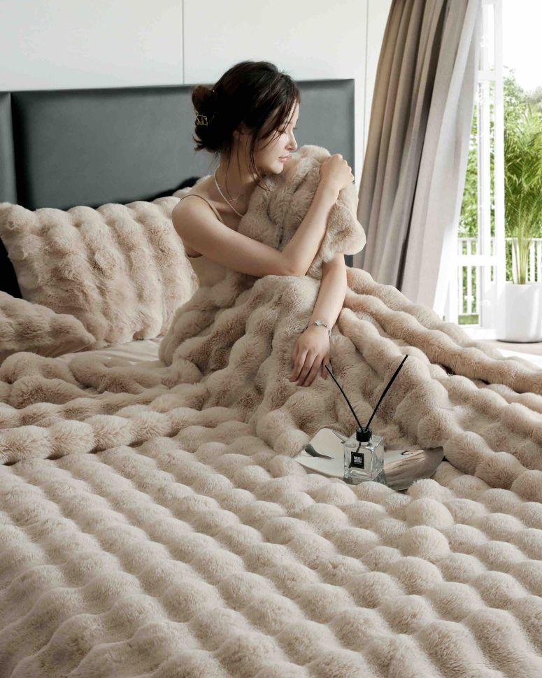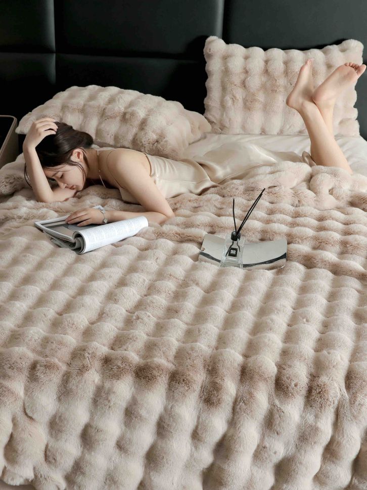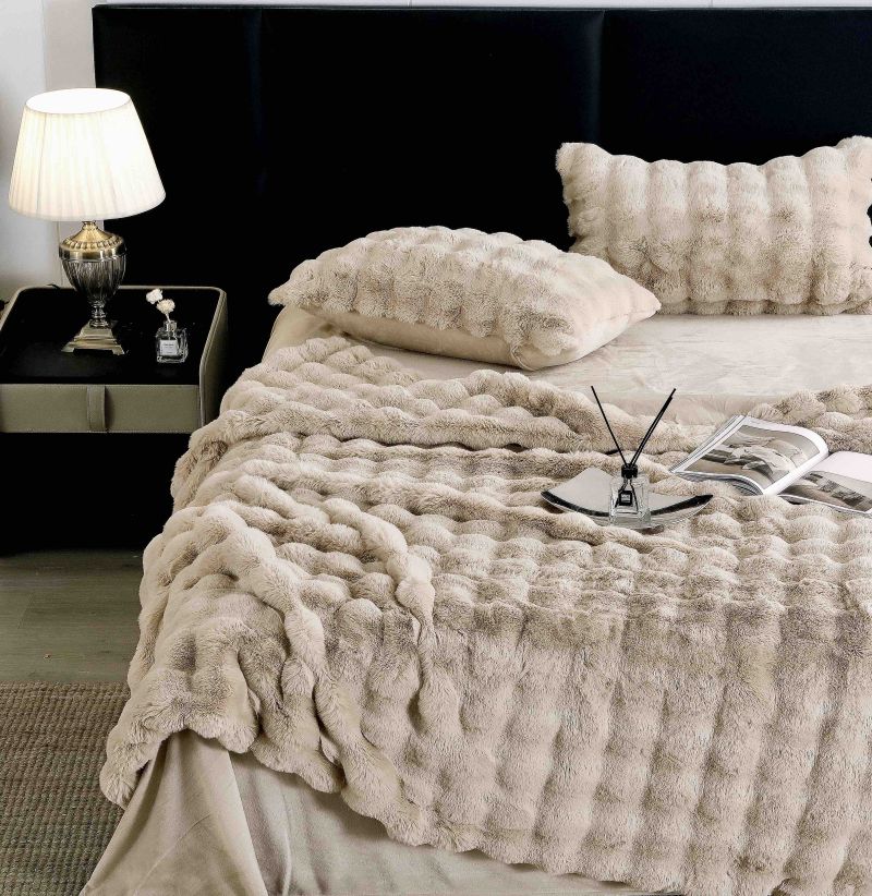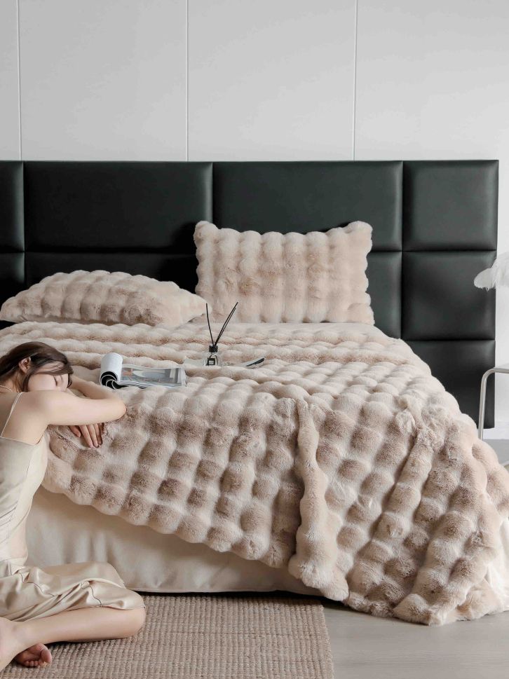 Превърнете спалнята си в оазис на комфорт и стил с този елегантен комплект от 6 части, изработен от изключително мек изкуствен заешки косъм. Създаден с внимание към детайла, този комплект съчетава изтънчена визия с практичност и дълготрайност.