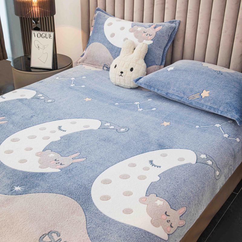 Плюшен чаршаф с ластик+2бр. калъфки за възглавница,Cocolino 100% полиестер