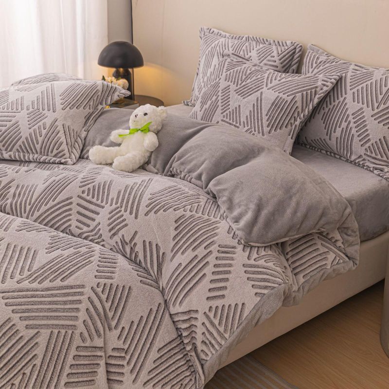 Висококачественият плюшен спален комплект от 4 части е създаден да внесе елегантност и комфорт във вашата спалня. Изработен от 100% полиестер, този комплект е идеален за тези, които ценят практичността и дълготрайността, без да правят компромис с лукса и уюта.