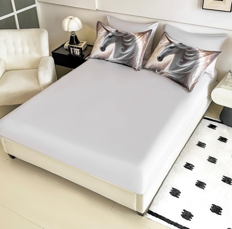 - Долен чаршаф: 1 бр., с размери 180х200 см, снабден с ластик. Този чаршаф осигурява плътно и стабилно прилепване към матрака, предотвратявайки свиване и разместване по време на сън.